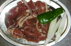 上ホルモン(直腸)を、モンゴルの自然塩・
